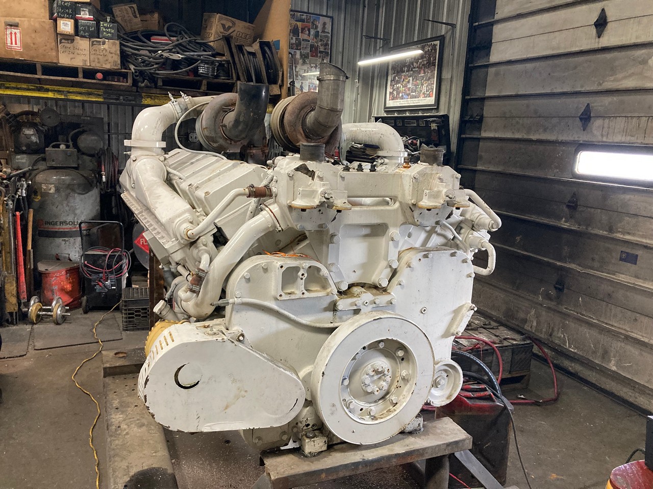 GOOD USED 1993 CUMMINS KTA38-C DIESEL TAKEOUT ENGINE FOR SALE at ADELMAN’S TRUCK PARTS in CANTON, OHIO. COMPLETE and RUN TESTED, V12, TWIN TURBOCHARGED and WATER AFTERCOOLED, 1628 CPL#, with 65+ LBS OIL PRESSURE.