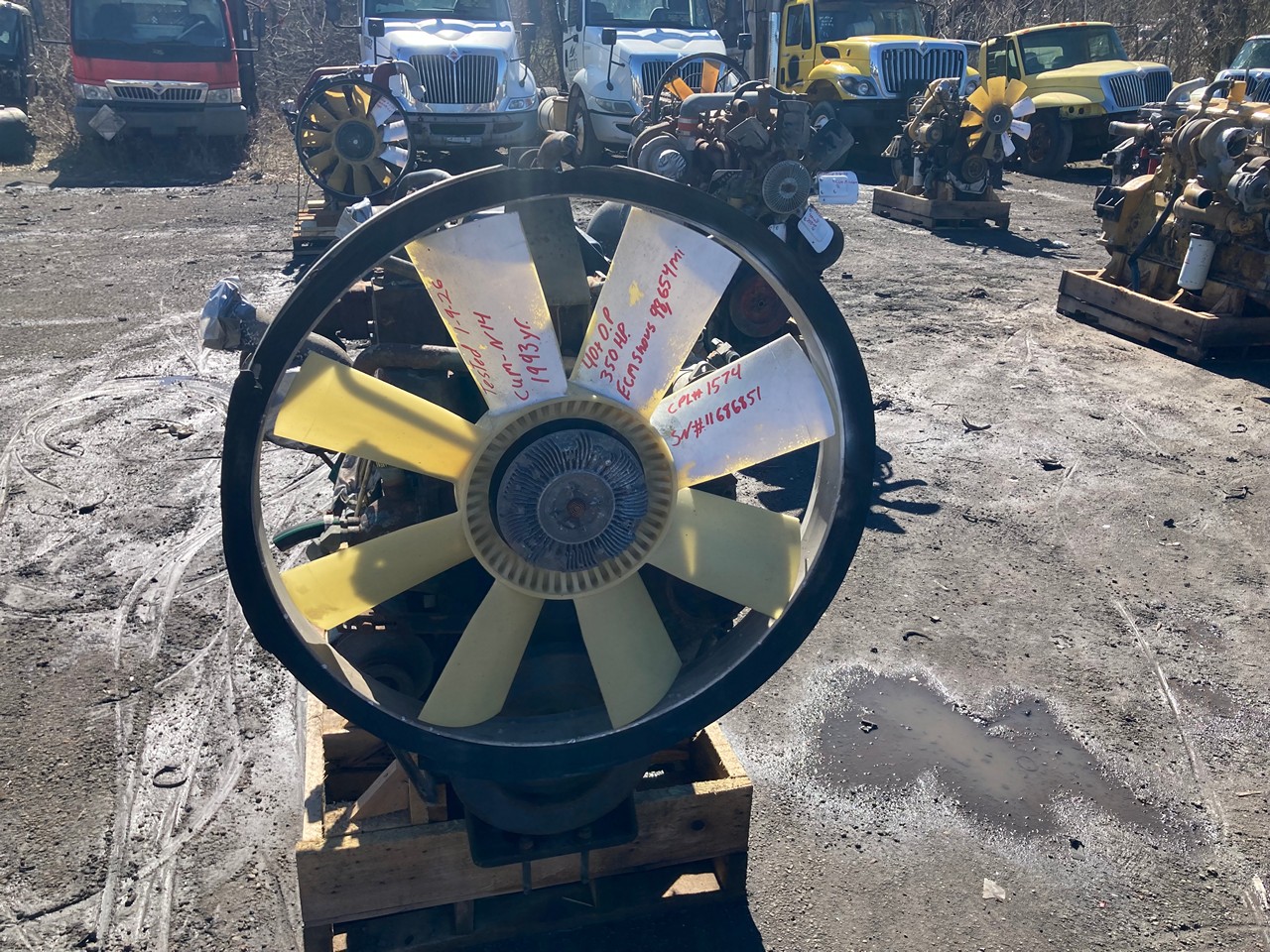 GOOD USED 1993 CUMMINS N14 CELECT 350HP DIESEL TAKEOUT ENGINE FOR SALE at ADELMAN’S TRUCK PARTS in CANTON, OHIO. 98,654 MILES SHOWING ON ECM, COMPLETE and RUN TESTED, 350 HP, 1574 CPL #, and 40+ LBS OIL PRESSURE.