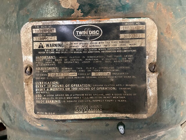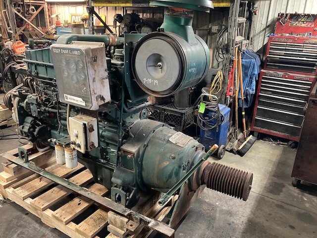 GOOD USED 1995 CUMMINS NTA855-P BIG CAM III INDUSTRIAL DIESEL ENGINE, WITH TWIN DISK HAND CLUTCH, FOR SALE IN OHIO. RUN TESTED AND COMPLETE, 335 HP, CPL# 1204 WITH 4,614 HOURS SHOWING. 40+ LBS OIL PRESSURE. NO CORE EXCHANGE NEEDED!