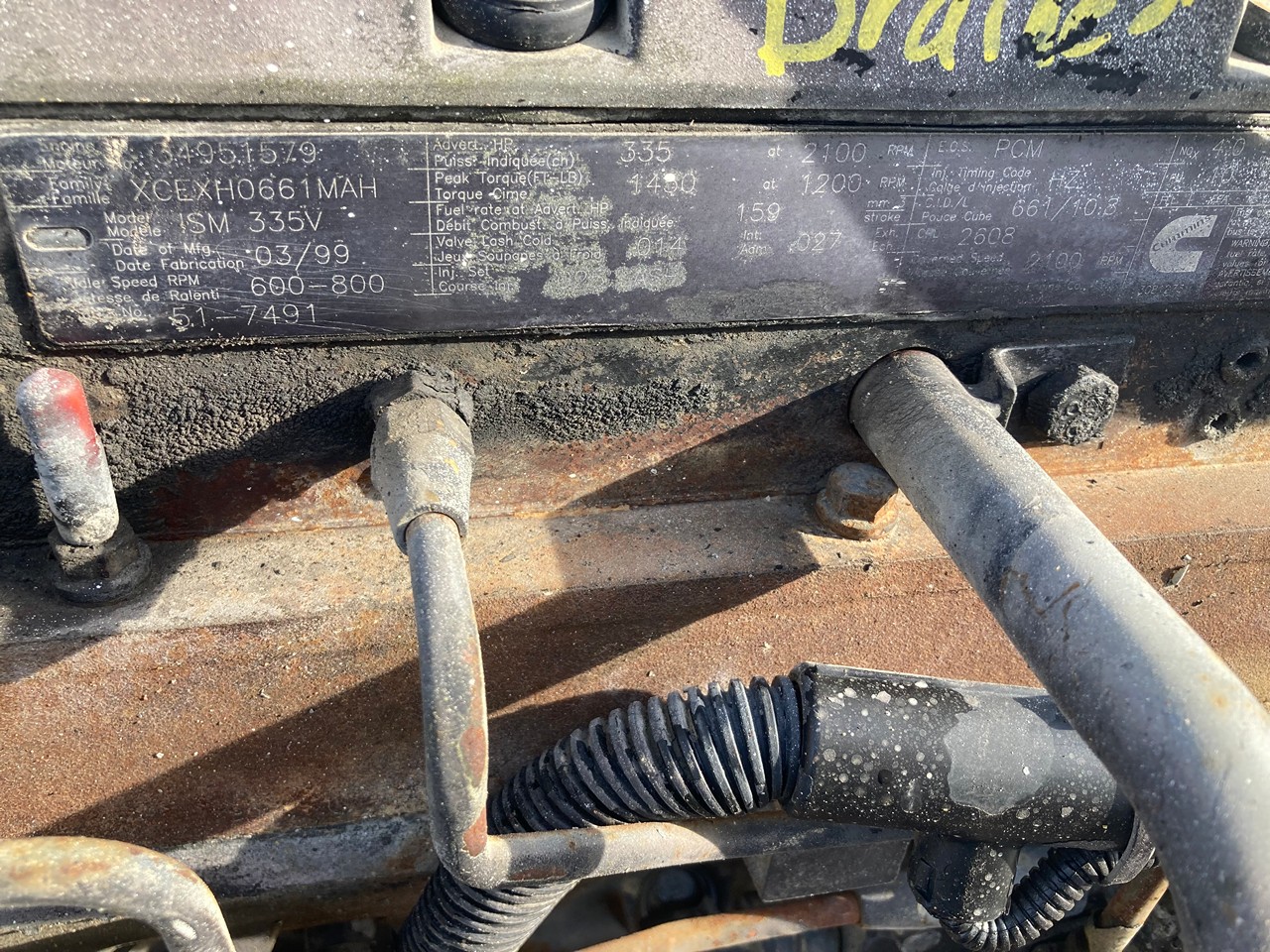 GOOD USED, 1999 CUMMINS ISM DIESEL TAKEOUT ENGINE FOR SALE at ADELMAN’S TRUCK PARTS in CANTON, OHIO. COMPLETE & RUN TESTED (HAS A BAD ECM), 335 HP @ 2100 RPM, MODEL ISM335V, 2608 CPL#, CM570, XCEXH0661MAH FAMILY #, with 50+ LBS OIL PRESSURE.