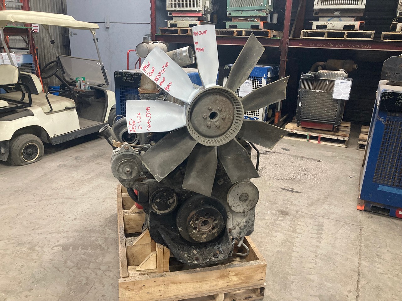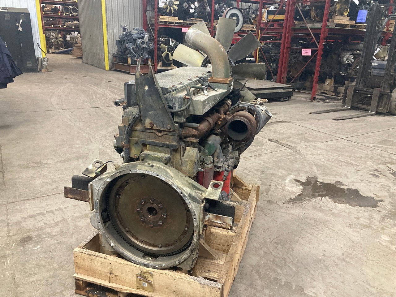 GOOD USED, 1999 LOW MILEAGE CUMMINS ISM 335 HP DIESEL TAKEOUT ENGINE FOR SALE at ADELMAN’S TRUCK PARTS in CANTON, OHIO. 99,166 MILES SHOWING ON ECM, COMPLETE & RUN TESTED,  335 HP @ 2100 RPM (ECM SET @ 400HP),  MODEL ISM335V,  2608 CPL#,  CM570,  XCEXH0661MAH FAMILY #, with TC, CAC, & ECM EMISSIONS CONTROL SYSTEMS,  and 50+ LBS OIL PRESSURE.