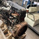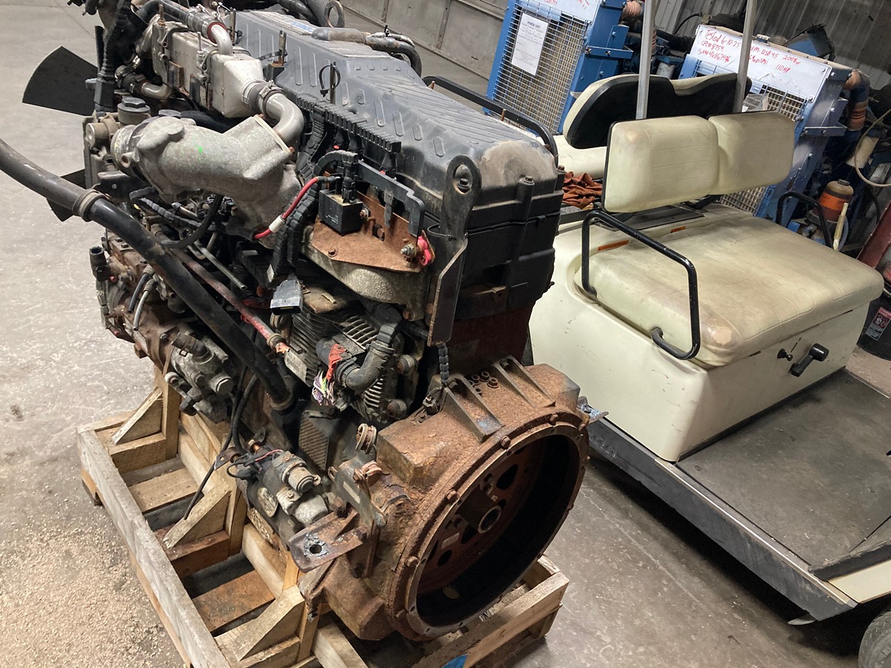 GOOD USED 2009 NAVISTAR INTERNATIONAL MAXXFORCE DT (466 CID) DIESEL TAKEOUT ENGINE FOR SALE at ADELMAN’S TRUCK PARTS in CANTON, OHIO. 124,664 MILES SHOWING ON ECM, 210 HP @ 2300 RPM, GDT210S, RUN TESTED and COMPLETE, 9NVXH0466AGC FAMILY #, with DI, TC, ECM, CAC, EGR, DOC & PTOX EMISSIONS CONTROL SYSTEMS (EPA07), and 50+ LBS OIL PRESSURE.