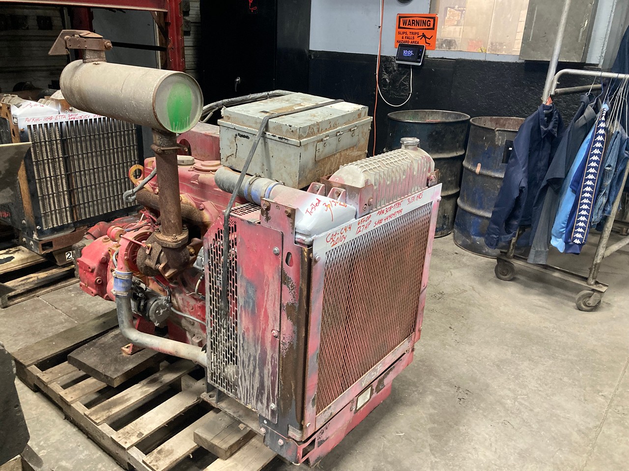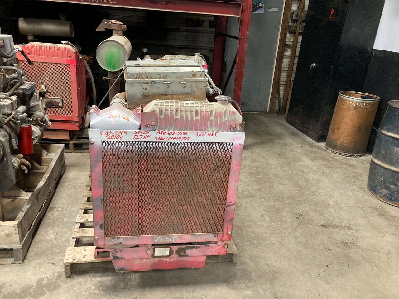 GOOD USED 2010 CATERPILLAR C4.4 HYDRAULIC POWER UNIT FOR SALE at ADELMAN’S TRUCK PARTS in CANTON, OHIO. 3,131 HOURS SHOWING ON ECM, RUN TESTED and COMPLETE ON PEG LEGS, with RADIATOR and CHARGE AIR COOLER, STARTER, ALTERNATOR, MUFFLER, and PUMP DRIVE with 2 HYDRAULIC PUMPS, 308-5585 ARRANGENEMT #, 127 HP @ 2200 RPM, ELECTRONIC w/ECM, 4 CYLINDER, TURBOCHARGED and AIR to AIR INTERCOOLED, (COMES WITH CONTROL BOX) and 65+ LBS OIL PRESSURE.