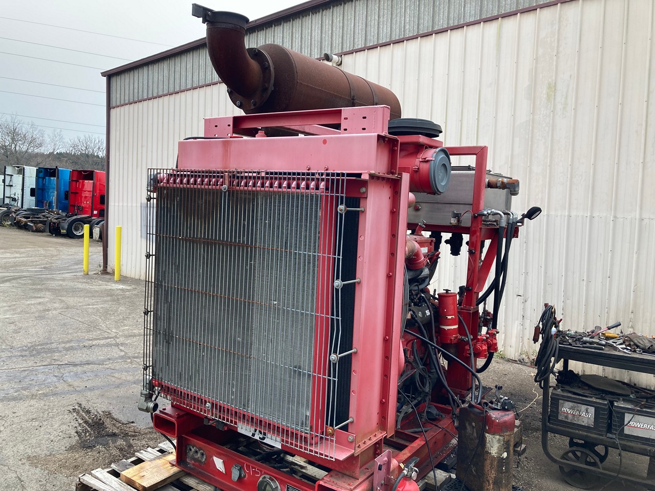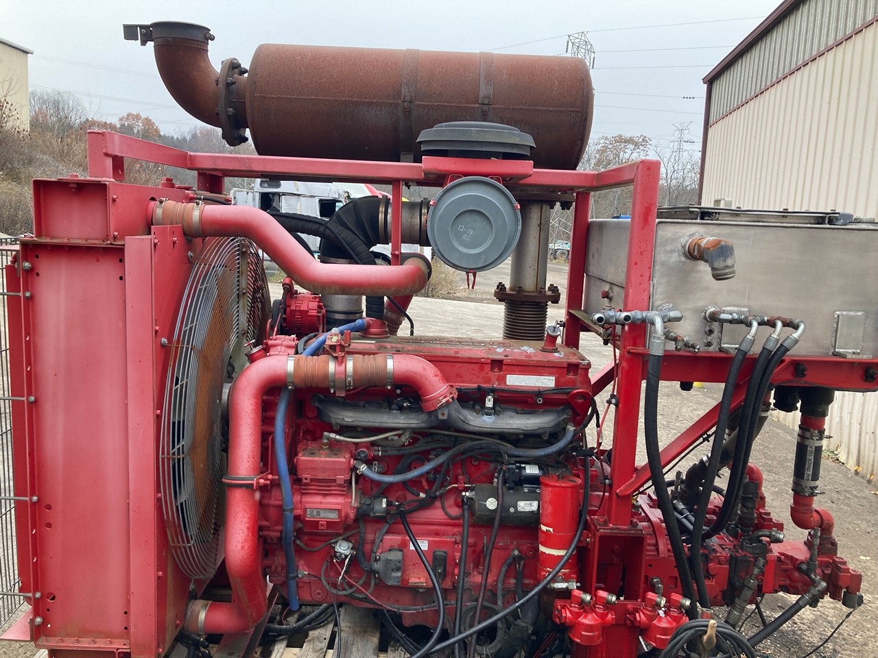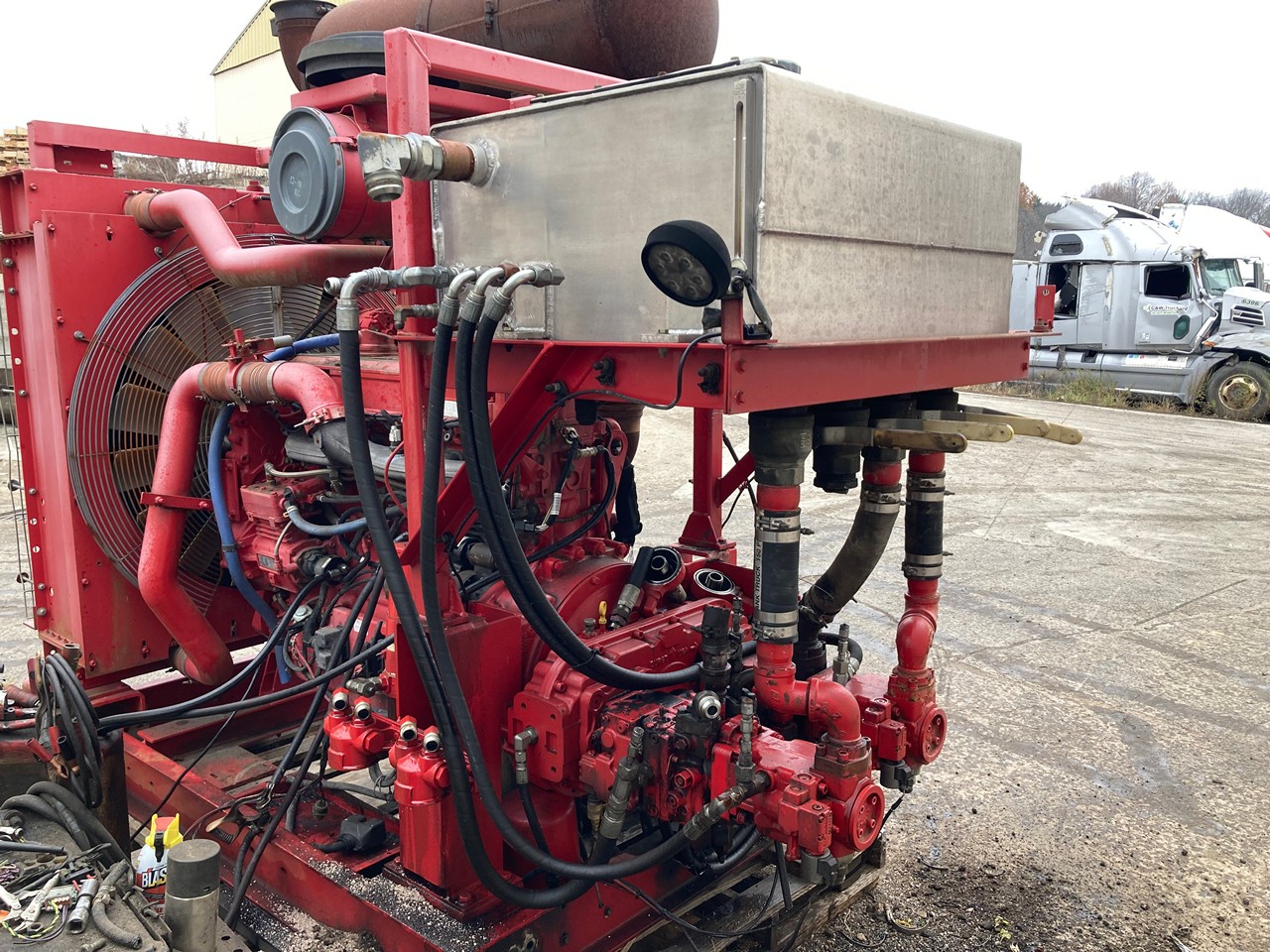 GOOD USED 2011 14.0L DETROIT DIESEL SERIES 60 HYDRAULIC POWER UNIT FOR SALE at ADELMAN’S in CANTON, OHIO. RUN TESTED and COMPLETE, with RADIATOR and CHARGE AIR COOLER, AIR CLEANER, MUFFLER, STARTER, ALTERNATOR, HYDRAULIC TANK, and PUMP DRIVE with HYDRAULIC PUMPS. 665 HP @ 2300 RPM (ECM SET @ 600 HP), DDEC 5, 6063HV39 MODEL #, TIER 3 EMISSIONS, ADDXL14.0VLD FAMILY #, with DDI, ECM, EGR, and TAA EMISSIONS CONTROL SYSTEMS, and 55+ LBS OIL PRESSURE.