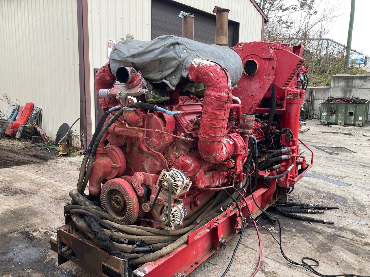 GOOD USED 2011 CATERPILLAR C32 ACERT 1,140HP DIESEL TAKEOUT ENGINE with HYDRAULIC PUMPS and TANK FOR SALE at ADELMAN’S TRUCK PARTS in CANTON, OHIO. ELECTRONIC w/ECM, RUN TESTED, 4,987 HOURS SHOWING ON ECM, 340-9410 ARRANGEMENT #, 1,140 HP @ 1800 RPM, with 55+ LBS OIL PRESSURE. ENGINE WAS REBUILT IN 2017. ***STARTER NOT INCLUDED