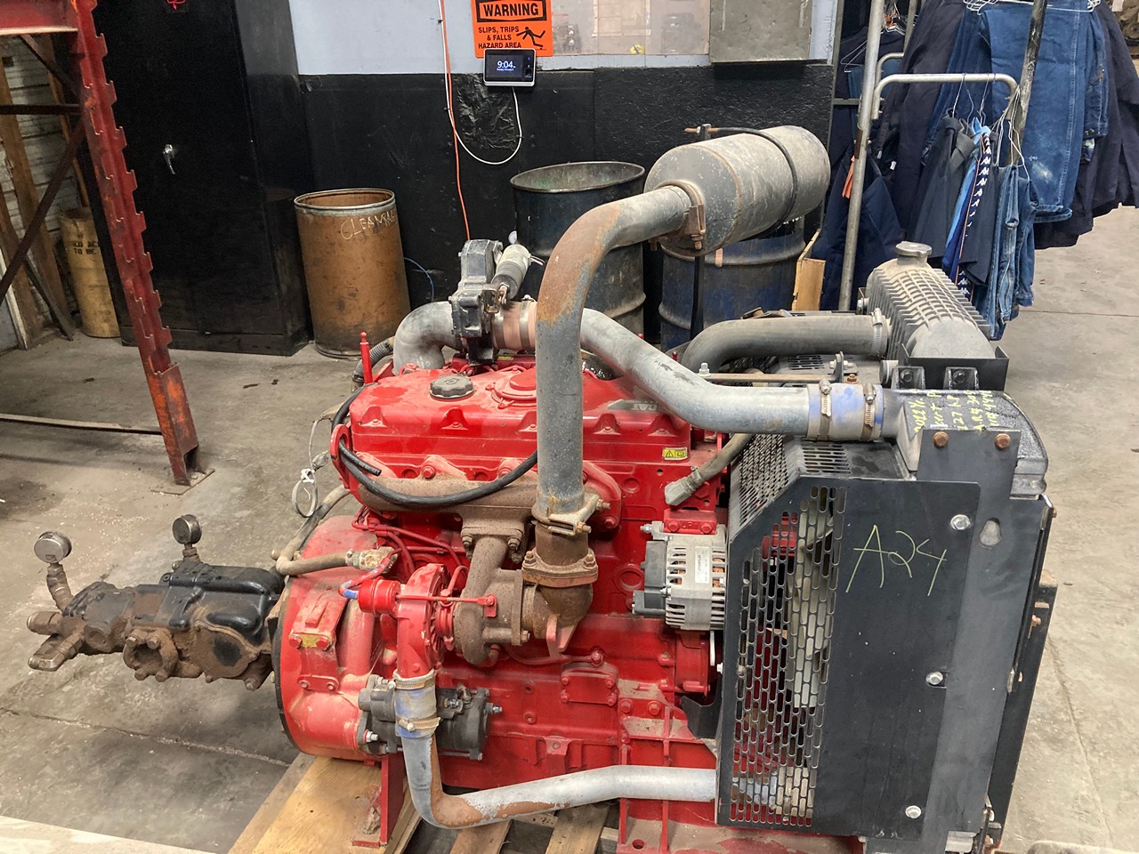 GOOD USED 2011 CATERPILLAR C4.4 HYDRAULIC POWER UNIT FOR SALE at ADELMAN’S TRUCK PARTS in CANTON, OHIO. 1,300 HOURS SHOWING ON ECM, RUN TESTED and COMPLETE on PEG LEGS with RADIATOR and CHARGE AIR COOLER, STARTER, ALTERNATOR, MUFFLER, and DIRECT MOUNT, INLINE HYDRAULIC PUMPS, 305-0489 ARRANGENEMT #, 127 HP @ 2200 RPM, MODEL 2900/2200, ELECTRONIC w/ECM, 4 CYLINDER, TURBOCHARGED and AIR to AIR INTERCOOLED. (MINUS CONTROL BOX/PANEL and HARNESS), TIER 3 EMISSIONS RATING, BPKXL04.4NJ1 FAMILY #, with DDI, TAA, and ECM EMISSIONS CONTROL SYSTEMS, and 60+ LBS OIL PRESSURE.