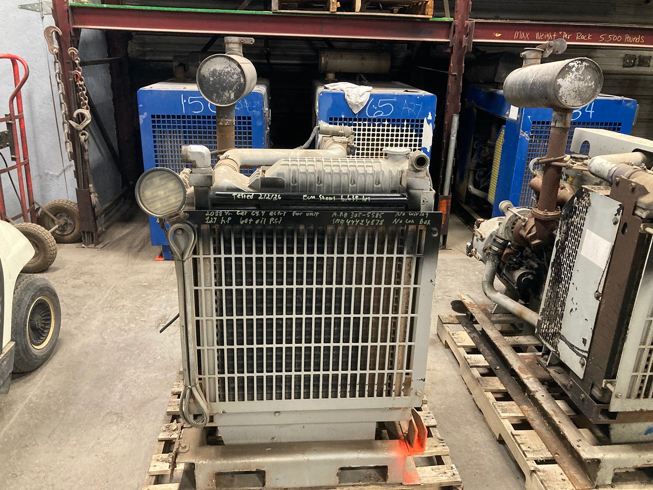 GOOD USED 2011 CATERPILLAR C4.4 HYDRAULIC POWER UNIT FOR SALE at ADELMAN’S TRUCK PARTS in CANTON, OHIO. 6,639 HOURS SHOWING ON ECM, RUN TESTED and COMPLETE ON a STEEL SKID with RADIATOR and CHARGE AIR COOLER, STARTER, ALTERNATOR, MUFFLER, and DIRECT MOUNT HYDRAULIC PUMP, 308-5585 ARRANGENEMT #, 127 HP @ 2200 RPM, ELECTRONIC w/ECM, 4 CYLINDER, TURBOCHARGED and AIR to AIR INTERCOOLED. (MINUS CONTROL BOX/PANEL and HARNESS) with 60+ LBS OIL PRESSURE.