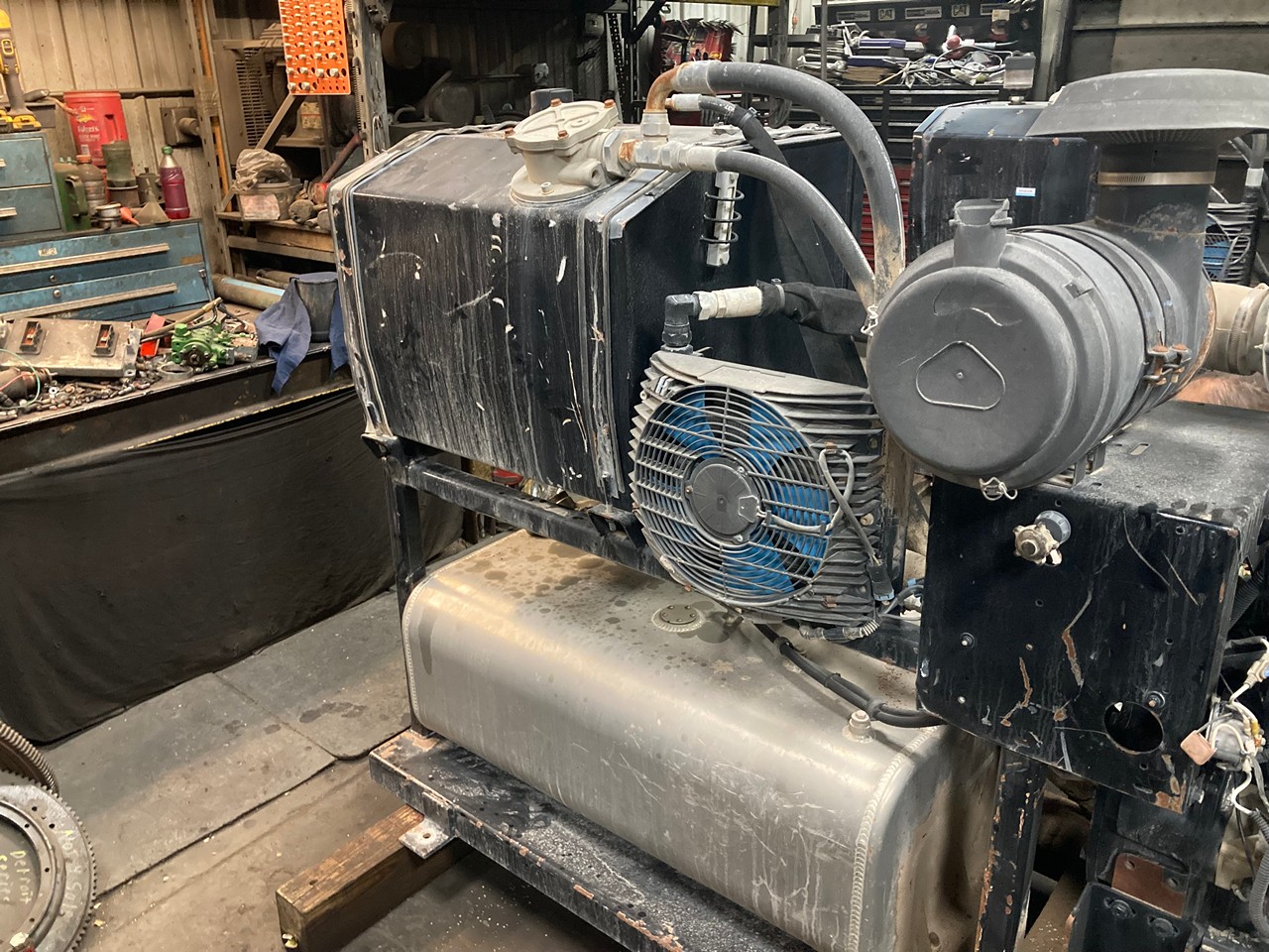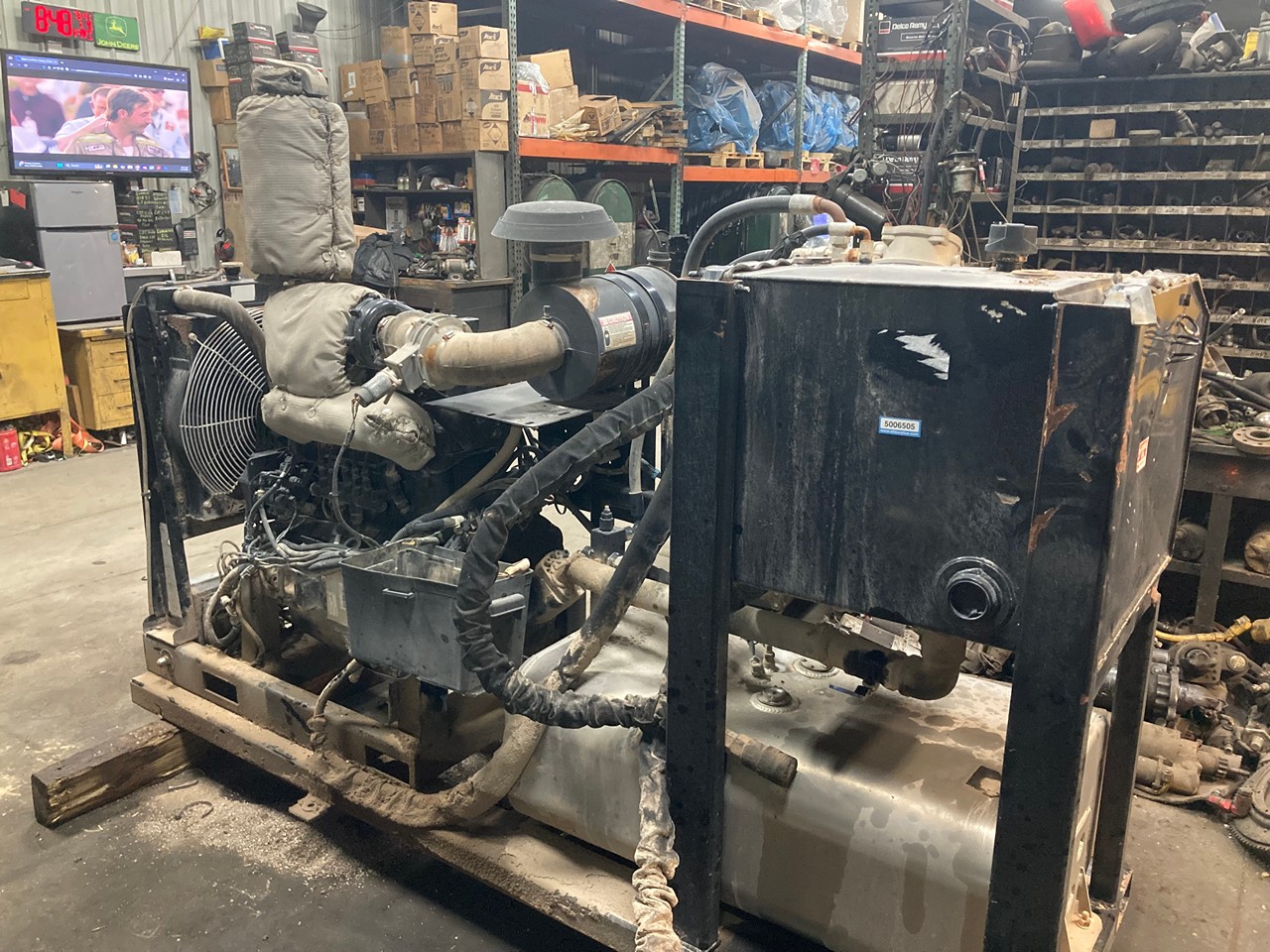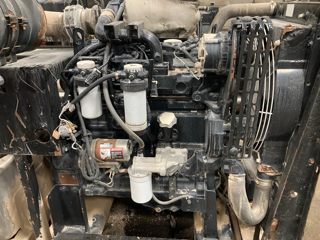GOOD USED 2012 JOHN DEERE 4045TF285 HYDRAULIC DIESEL POWER UNIT FOR SALE at ADELMAN’S TRUCK PARTS in CANTON, OHIO. 1,304 HOURS SHOWING ON ECM, COMPLETE and RUN TESTED, 4 CYLINDER, TURBOCHARGED, ELECTRONIC w/ECM, SKID MOUNTED, w/RADIATOR, STARTER, ALTERNATOR, MUFFLER, AIR CLEANER, and CONTROL BOX, 99 HP @ 2400 RPM, TIER 3, BJDXL04.5144 FAMILY #, with DDI, TC, CAC, SPL, and ECM EMISSIONS CONTROL SYSTEMS, and 55+ LBS OIL PRESSURE.