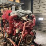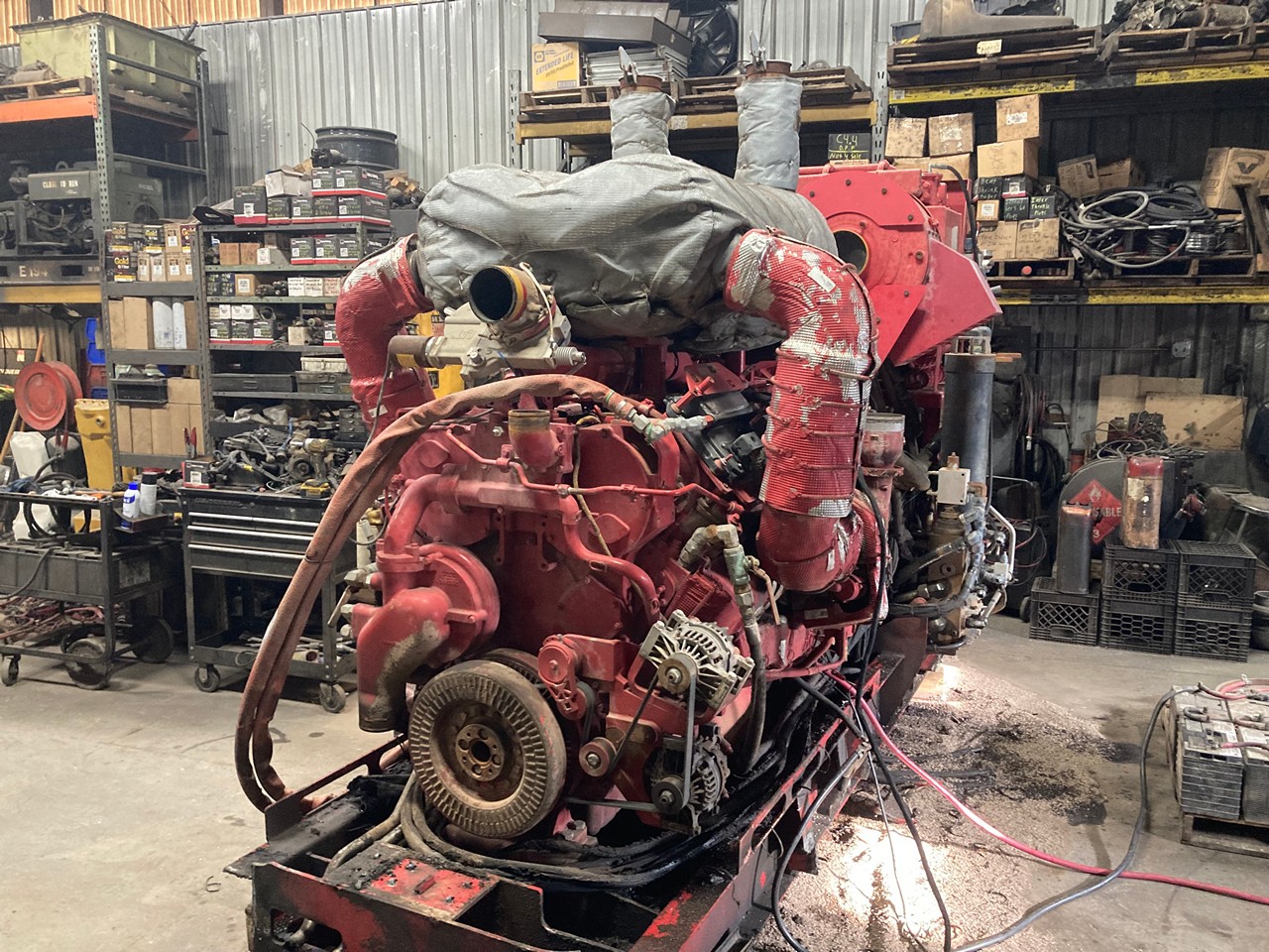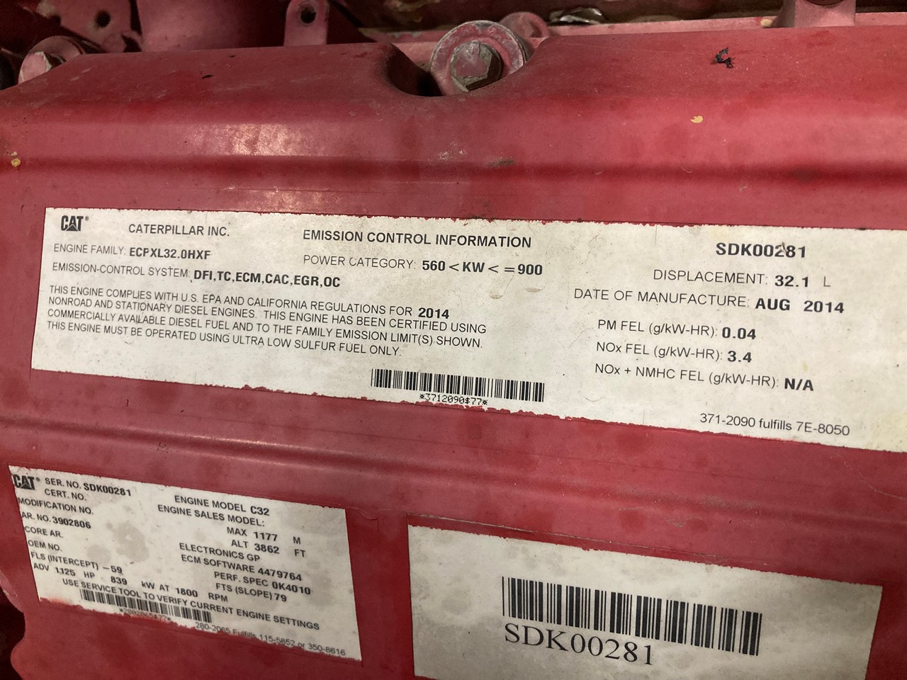 GOOD USED 2014 CATERPILLAR C32 ACERT 1,125HP DIESEL TAKEOUT ENGINE with HYDRAULIC PUMPS and TANK FOR SALE at ADELMAN’S TRUCK PARTS in CANTON, OHIO, RUN TESTED, 390-2806 ARRANGEMENT #, 1,125 HP @ 1800 RPM, TIER 4 FINAL, ECPXL32.0HXF FAMILY #, with DFI, TC, ECM, CAC, EGR, and OC EMISSIONS CONTROL SYSTEMS, and 65+ LBS OIL PRESSURE.
