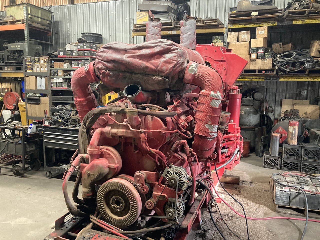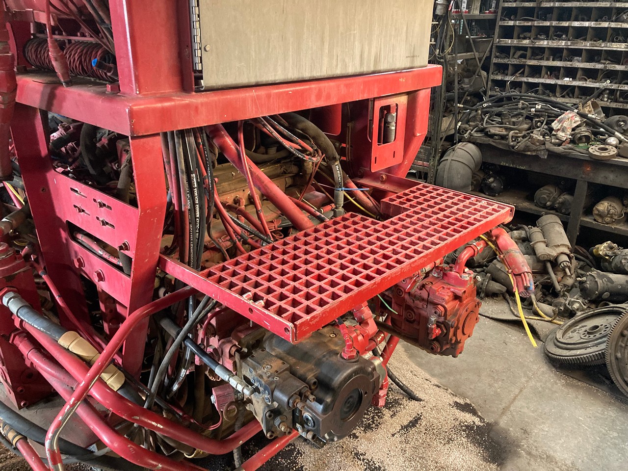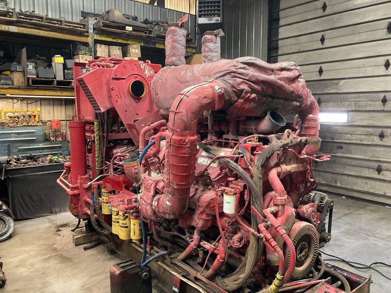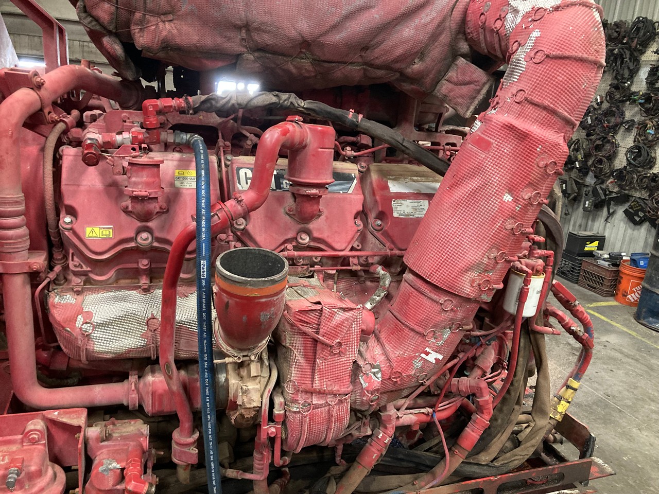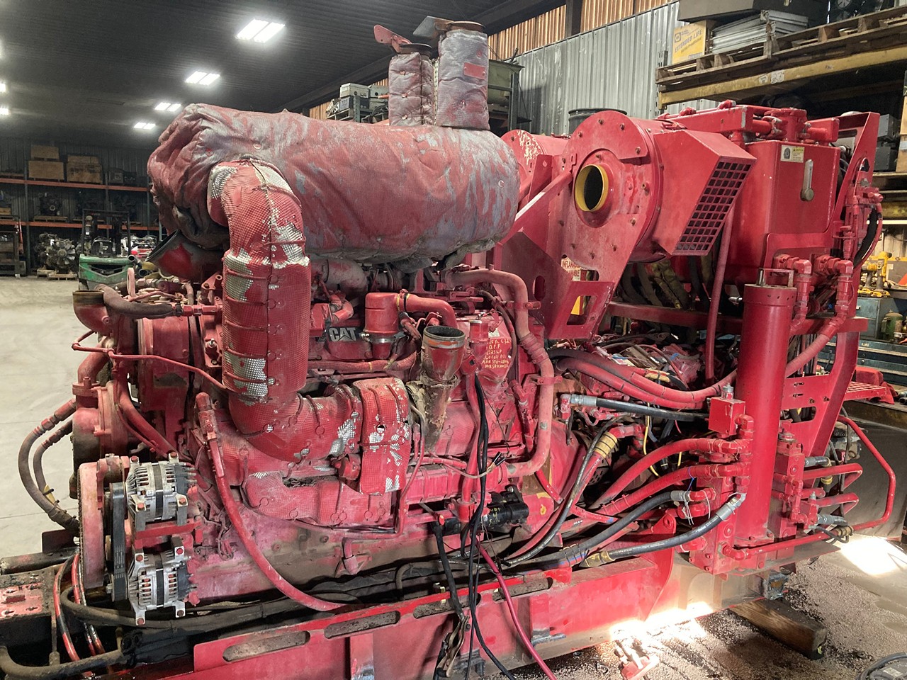 GOOD USED 2015 CATERPILLAR C32 ACERT 1,125HP DIESEL TAKEOUT ENGINE with HYDRAULIC PUMPS and TANK FOR SALE at ADELMAN’S TRUCK PARTS in CANTON, OHIO, RUN TESTED, 390-2806 ARRANGEMENT #, 1,125 HP @ 1800 RPM, TIER 4 FINAL EMISSIONS, with DFI, TC, ECM, CAC, EGR, and OC EMISSIONS CONTROL SYSTEMS, and 60+ LBS OIL PRESSURE.