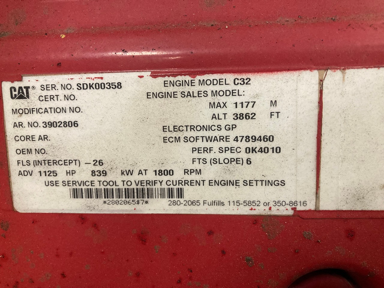 GOOD USED 2016 CATERPILLAR C32 ACERT 1,125HP DIESEL TAKEOUT ENGINE FOR SALE at ADELMAN’S TRUCK PARTS in CANTON, OHIO. ELECTRONIC w/ECM, RUN TESTED, 7,797 HOURS SHOWING ON ECM, 390-2806 ARRANGEMENT #, 1,125 HP @ 1800 RPM, with 65+ LBS OIL PRESSURE. ***STARTER NOT INCLUDED