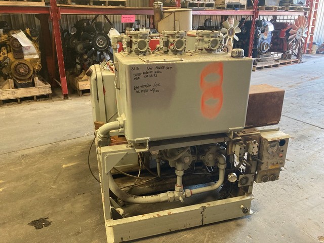 GOOD USED CATERPILLAR 3116 HYDRAULIC INDUSTRIAL POWER UNIT FOR SALE. DIRECT INJECTION, TURBOCHARGED, 6 CYLINDER. RUN TESTED AND COMPLETE ON SKID WITH RADIATOR, STARTER, ALT., MUFFLER, AIR CLEANER, CONTROL BOX, FUEL TANK, HYDRAULIC TANK, AND PUMPS. 65-100 LBS OIL PRESSURE. 30 DAY GUARANTEE ON THE BLOCK AND THE CRANK.