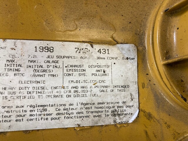 GOOD USED 1998 CATERPILLAR 3126B TAKEOUT ENGINE FOR SALE. ALL COMPLETE AND RUN TESTED, 190 HP, 141,478 MILES SHOWING ON ECM, ELECTRONIC WITH 70 PIN ECM. 40-65 LBS OIL PRESSURE. 30 DAY GUARANTEE ON THE BLOCK AND THE CRANK. NO CORE EXCHANGE NEEDED!