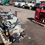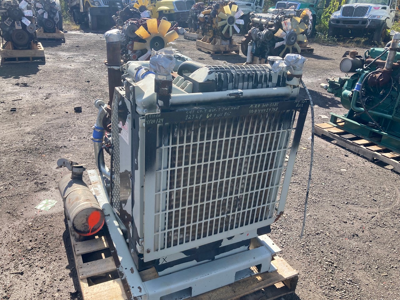 GOOD USED, CATERPILLAR C4.4 HYDRAULIC DIESEL ENGINE POWER UNIT FOR SALE AT ADELMAN’S IN OHIO. 127 HP @ 2200 RPM, ELECTRONIC, 4 CYLINDER, TURBOCHARGED AND AIR TO AIR. RUN TESTED AND COMPLETE (MINUS CONTROL BOX/PANEL) ON A STEEL SKID WITH RADIATOR & CHARGE AIR COOLER, STARTER, ALT., MUFFLER and PUMP DRIVE WITH HYDRAULIC PUMPS. 60+ LBS OIL PRESSURE.