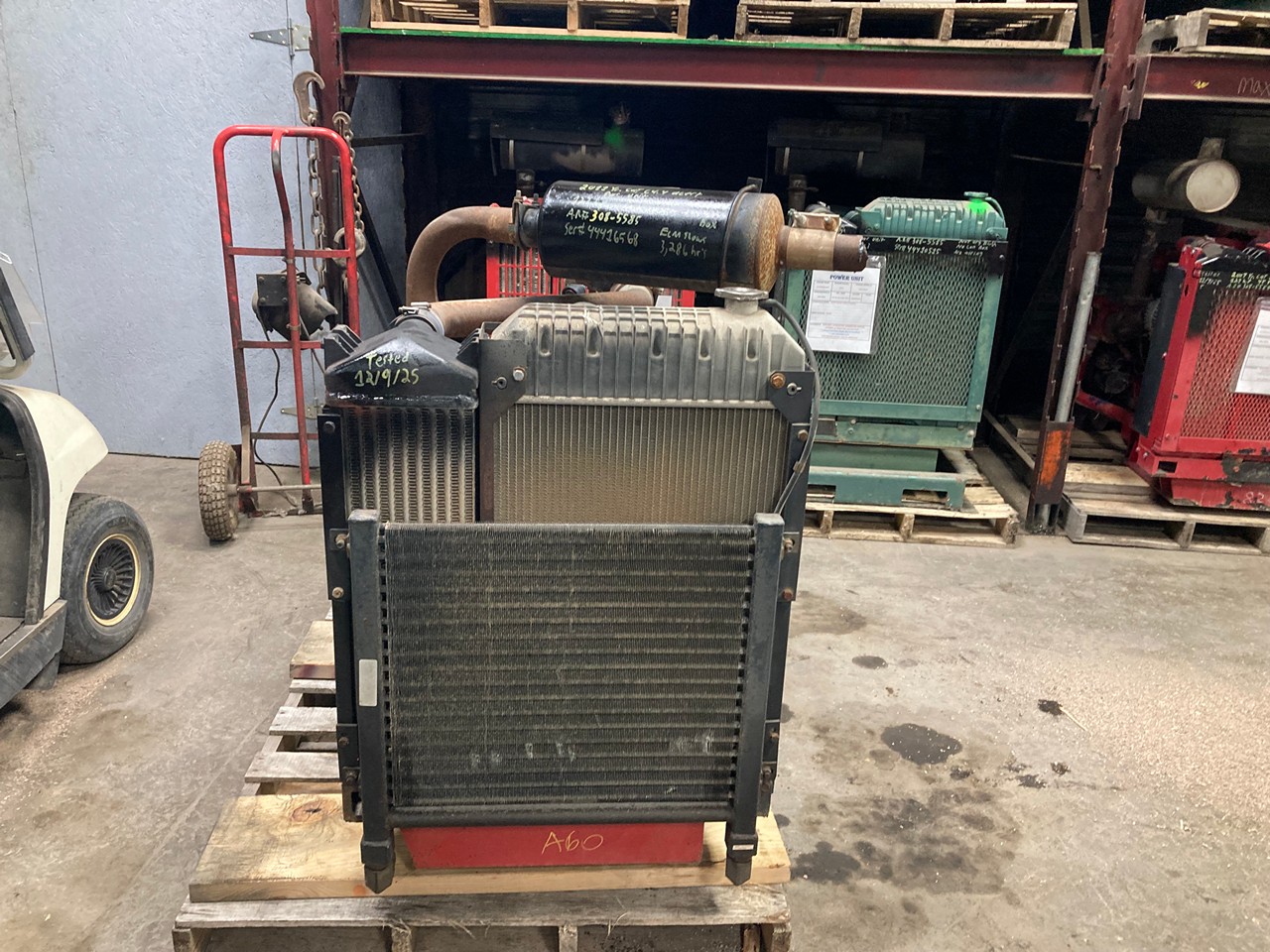GOOD USED, 2011 CATERPILLAR C4.4 HYDRAULIC DIESEL POWER UNIT FOR SALE at ADELMAN’S TRUCK PARTS in CANTON, OHIO. 3,286 HOURS SHOWING ON ECM, 127 HP @ 2200 RPM, ELECTRONIC w/ECM, 4 CYLINDER, TURBOCHARGED and AIR TO AIR, RUN TESTED and COMPLETE (MINUS CONTROL BOX/PANEL ) ON a STEEL SKID with RADIATOR and CHARGE AIR COOLER, STARTER, ALTERNATOR, MUFFLER and INLINE, DIRECT MOUNT HYDRAULIC PUMPS, BPKXL04.4NJ1 FAMILY #, with DDI, TAA, and ECM EMISSIONS CONTROL SYSTEMS, 308-5585 ARRANGEMENT #, TIER 3 RATING, 2900/2200 MODEL CODE #, with 65+ LBS OIL PRESSURE.