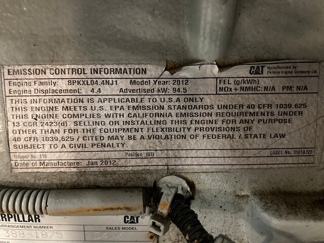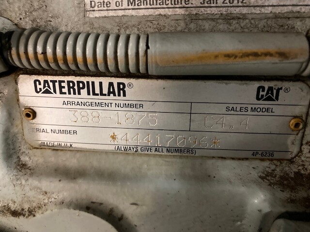 GOOD USED 2012 CATERPILLAR C4.4 HYDRAULIC POWER UNIT FOR SALE AT ADELMAN’S IN CANTON, OHIO. ELECTRONIC, 4 CYLINDER, TURBOCHARGED AND AIR TO AIR. 127 HP, RUN TESTED AND COMPLETE (MINUS CONTROL BOX/PANEL) ON SKID WITH RADIATOR & CHARGE AIR COOLER, STARTER, ALT., MUFFLER AND FUNK PUMP DRIVE WITH 2 HYDRAULIC PUMPS. 6,914 HOURS SHOWING ON ECM. BPKXL04.4NJ1 FAMILY #. 65+ LBS OIL PRESSURE. 30 DAY GUARANTEE ON THE BLOCK AND THE CRANK.
