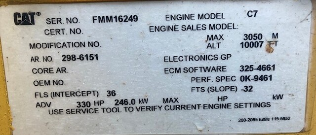UNUSED GOVT SURPLUS, CATERPILLAR C7 ACERT ENGINE FOR SALE. ALL COMPLETE WITH STARTER, TURBOCHARGER, AND 70 PIN ECM. 330 HP, 298-6151 ARRANGEMENT #. NO CORE EXCHANGE REQUIRED!