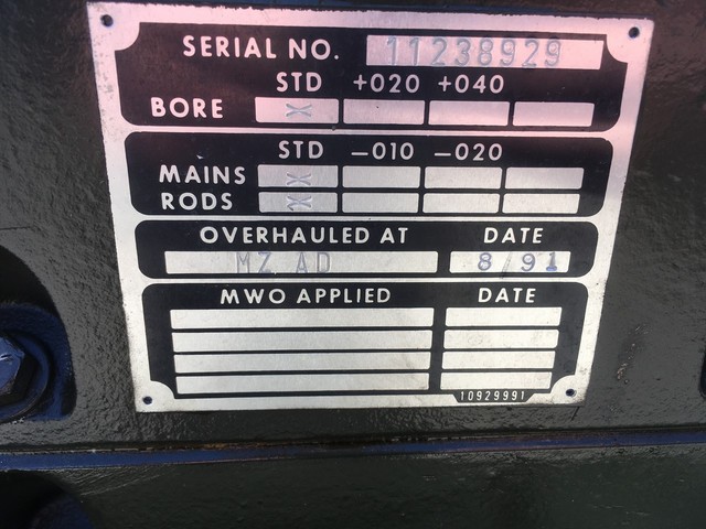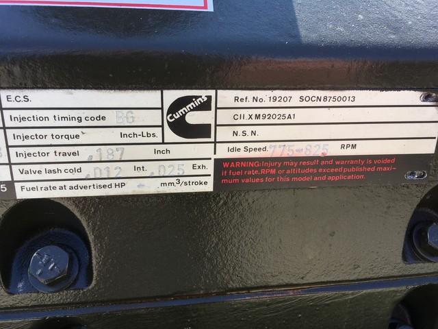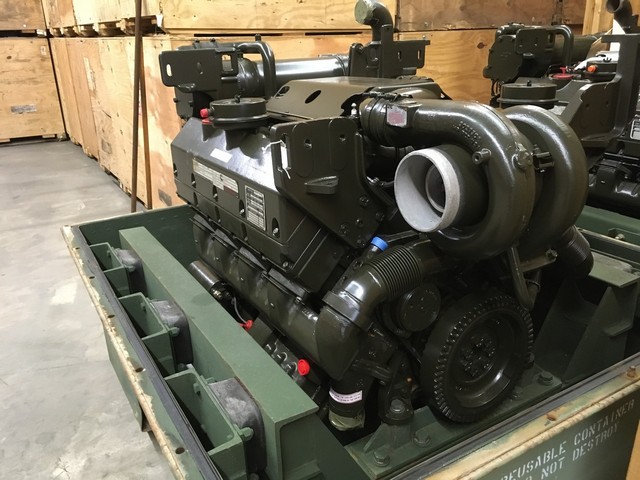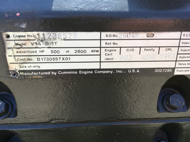 GOVT REBUILT, CUMMINS VTA903 MILITARY SURPLUS ENGINE FOR SALE. ALL COMPLETE (MINUS ALTERNATOR), V8, TURBOCHARGED AND WATER AFTERCOOLED. 500 HP @ 2600 RPM’S, CPL # 0383.