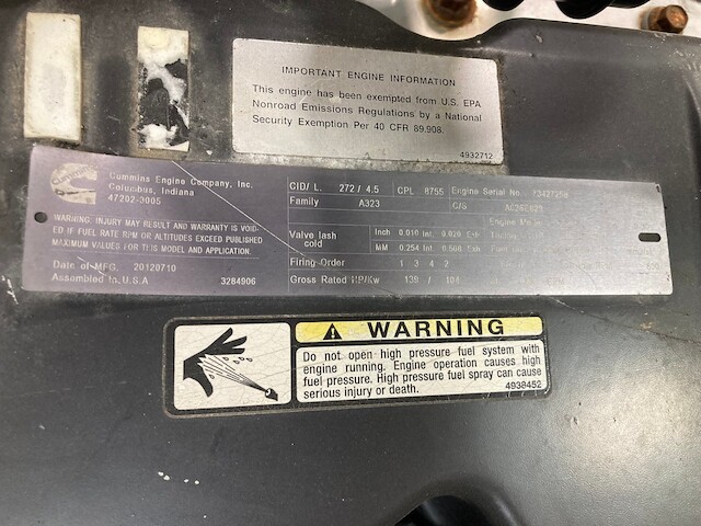 GOOD USED 2012 Yr. CUMMINS QSB4.5 DIESEL TAKEOUT ENGINE FOR SALE IN OHIO. RUN TESTED AND COMPLETE WITH ECM, FLYWHEEL, STARTER & ALTERNATOR. 139 HP, TIER 3, CPL # 8755, CM850 FUEL SYSTEM.