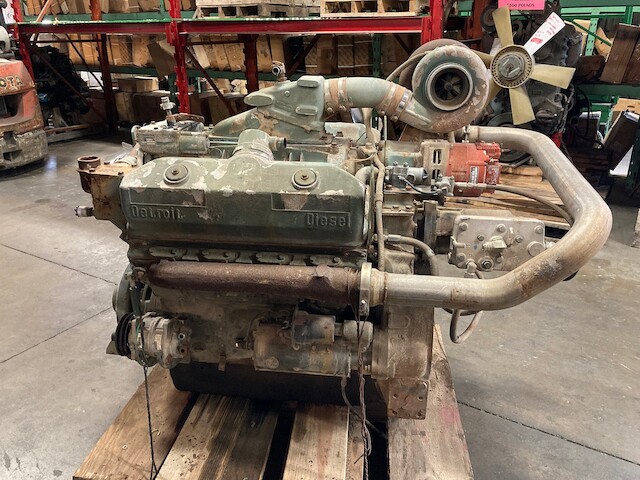 GOOD USED 8V92TA TAKEOUT ENGINE FOR SALE. ALL COMPLETE (MINUS FLYWHEEL) AND RUN TESTED. V8, TURBOCHARGED AND WATER AFTERCOOLED WITH JAKE BRAKES. 60-55 LBS OIL PRESSURE. 30 DAY GUARANTEE ON THE BLOCK AND THE CRANK. NO CORE EXCHANGE NEEDED!