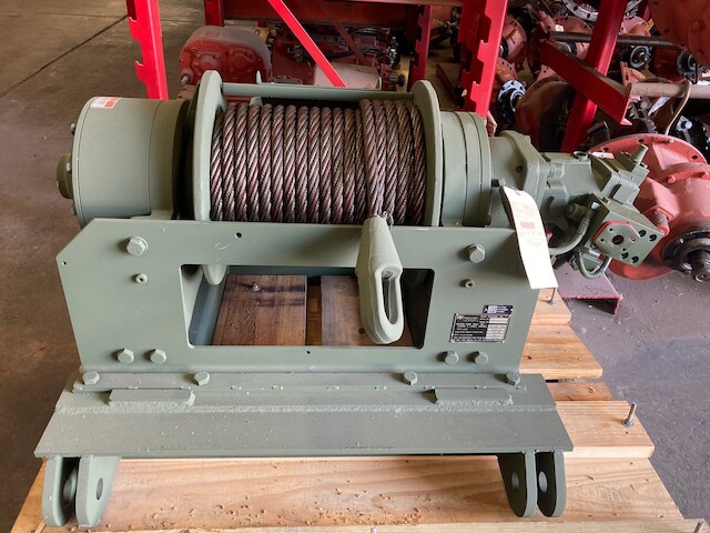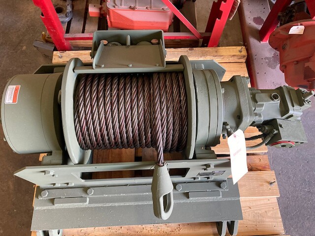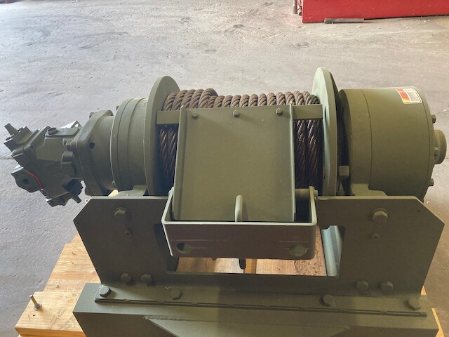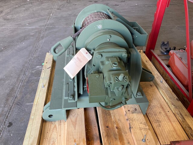 (4) UNUSED SURPLUS 45,000 LB. DP MANUFACTURING WINCHES FOR SALE. 45K CAPACITY, WITH HYDRAULIC MOTOR AND 7/8″ CABLE WITH LARGE EYELET.