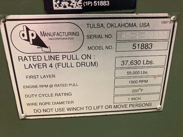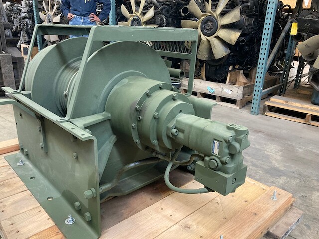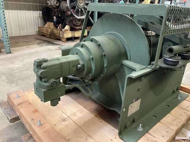 55,000 LB. DP MANUFACTURING, UNUSED GOVT SURPLUS WINCH FOR SALE AT ADELMAN’S, IN CANTON, OHIO. COMES WITH HYDRAULIC MOTOR. WINCH MODEL 51883