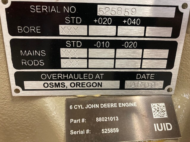 REBUILT JOHN DEERE 6059T SURPLUS ENGINE FOR SALE. ALL COMPLETE, 5.9 LITER, 6 CYLINDER, TURBOCHARGED, MECHANICAL INJECTION PUMP. 6059TF002. NO CORE EXCHANGE NEEDED!