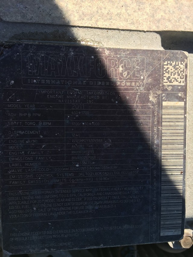 GOOD USED 2011 NAVISTAR INTERNATIONAL MAXXFORCE 13 DIESEL ENGINE FOR SALE. COMPLETE AND RUN TESTED. DFI, TC(2), ECM, CAC (2), EGR, OC(2), & PTOX EMISSIONS CONTROL SYSTEMS. GEAR DRIVEN FAN ASSEMBLY. 40 LBS OIL PRESSURE. 30 DAY GUARANTEE ON THE BLOCK AND THE CRANK. NO CORE EXCHANGE NEEDED!