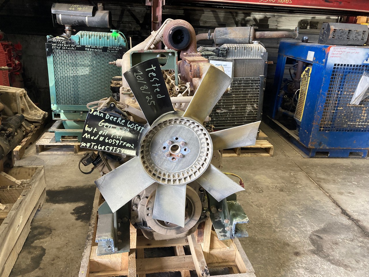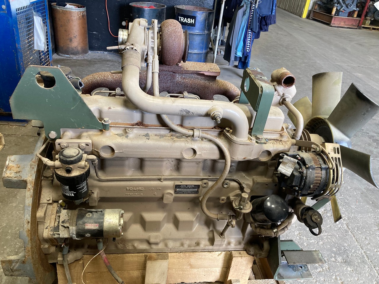 GOOD USED JOHN DEERE 6059T ENGINE FOR SALE in CANTON, OHIO at ADELMAN’S TRUCK PARTS. USED DIESEL TAKEOUT, ALL COMPLETE and RUN TESTED, 5.9 LITERS, 6 CYLINDER, TURBOCHARGED, MECHANICAL INJECTION PUMP, 6059T002, with 60+ LBS OIL PRESSURE.