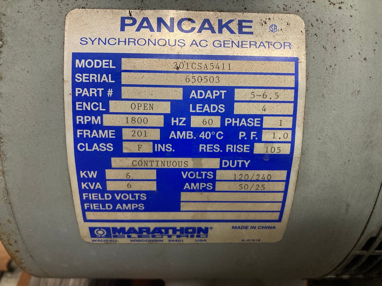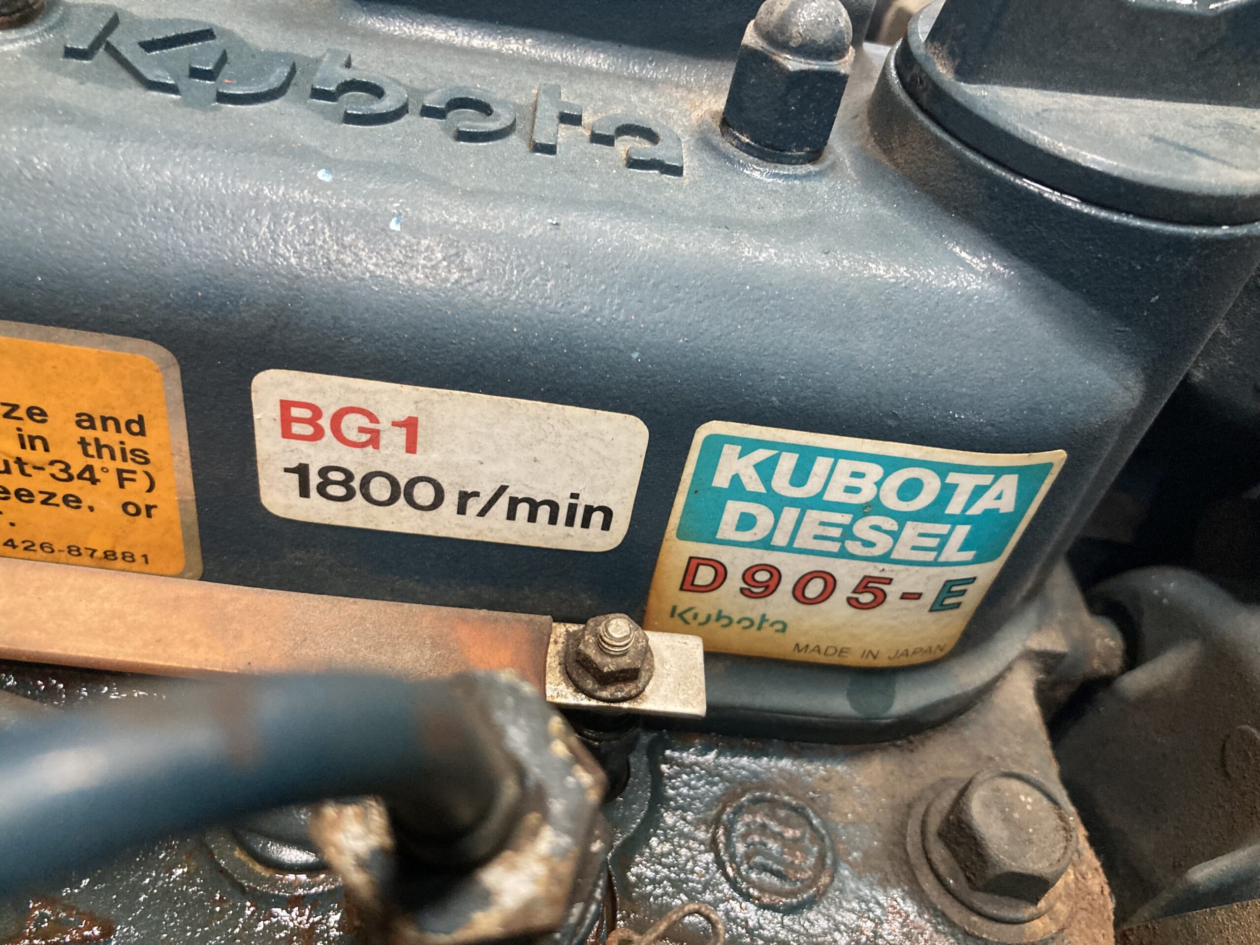 KUBOTA D905E-BG1 6KW DIESEL GENERATOR SET FOR SALE at ADELMAN’S TRUCK PARTS in CANTON, OHIO. 2,750 HOURS SHOWING ON METER, SINGLE PHASE, 6 KW, 6 KVA, 120/240 VOLTS, 50/25 AMPS, 60 HZ, 1800 RPM, MARATHON ELECTRIC PANCAKE MODEL, CONTINUOUS DUTY.