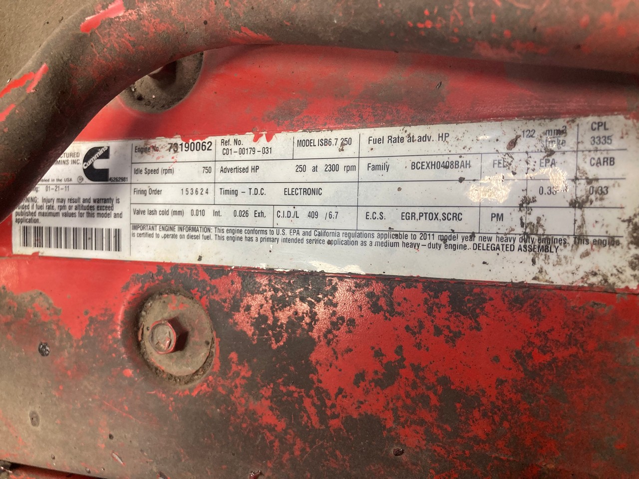 LOW MILEAGE 2011 CUMMINS ISB6.7 250HP USED DIESEL TAKEOUT ENGINE FOR SALE in CANTON, OHIO at ADELMAN’S TRUCK PARTS. 36,331 MILES SHOWING ON ECM, COMPLETE and RUN TESTED, 250 HP @ 2300 RPM, CPL # 3335, FAMILY # BCEXH0408BAH, with EGR, PTOX, & SCRC EMISSIONS CONTROL SYSTEMS, EPA’10, CM2250, COMMON RAIL FUEL SYSTEM, with 40+ LBS OIL PRESSURE.
