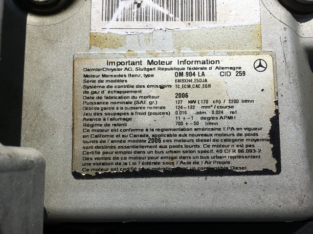 GOOD USED MERCEDES OM904LA/MBE900 TAKEOUT ENGINE FOR SALE. ALL COMPLETE AND RUN TESTED. 4 CYLINDER, ELECTRONIC, WITH EGR EMISSIONS. 50 LBS OIL PRESSURE. 30 DAY GUARANTEE ON THE BLOCK AND THE CRANK. NO CORE EXCHANGE NEEDED!