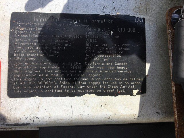 GOOD USED MERCEDES OM906LA-MBE900 TAKEOUT ENGINE FOR SALE. ALL COMPLETE AND RUN TESTED. ELECTRONIC WITH EGR EMISSIONS. 50 LBS OIL PRESSURE. 30 DAY GUARANTEE ON THE BLOCK AND THE CRANK. NO CORE EXCHANGE NEEDED!