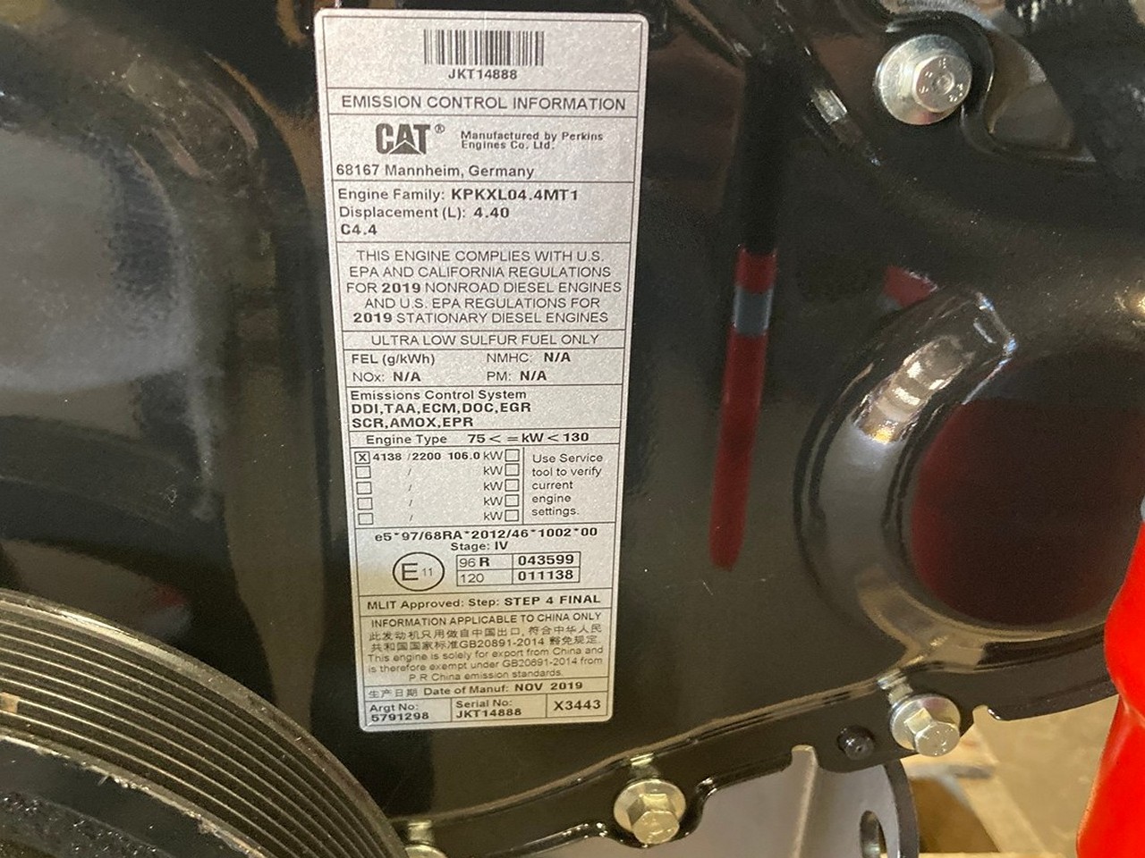 NEW 2019 CAT C4.4 ACERT DIESEL ENGINE FOR SALE at ADELMAN’S TRUCK PARTS in CANTON, OHIO. All COMPLETE with STARTER, ALTERNATOR, TURBOCHARGER, ECM, FLYWHEEL, and CLEAN EMISSIONS MODULE, 142 HP @ 2200 RPM, 579-1298 ARRANGEMENT #, COMMON RAIL FUEL SYSTEM, TIER 4 FINAL EMISSIONS, KPKXL04.4MT1 FAMILY #, DDI, TAA, ECM, DOC, EGR, SCR, AMOX, & EPR EMISSIONS CONTROL SYSTEMS, and ENGINE TYPE 4138/2200.