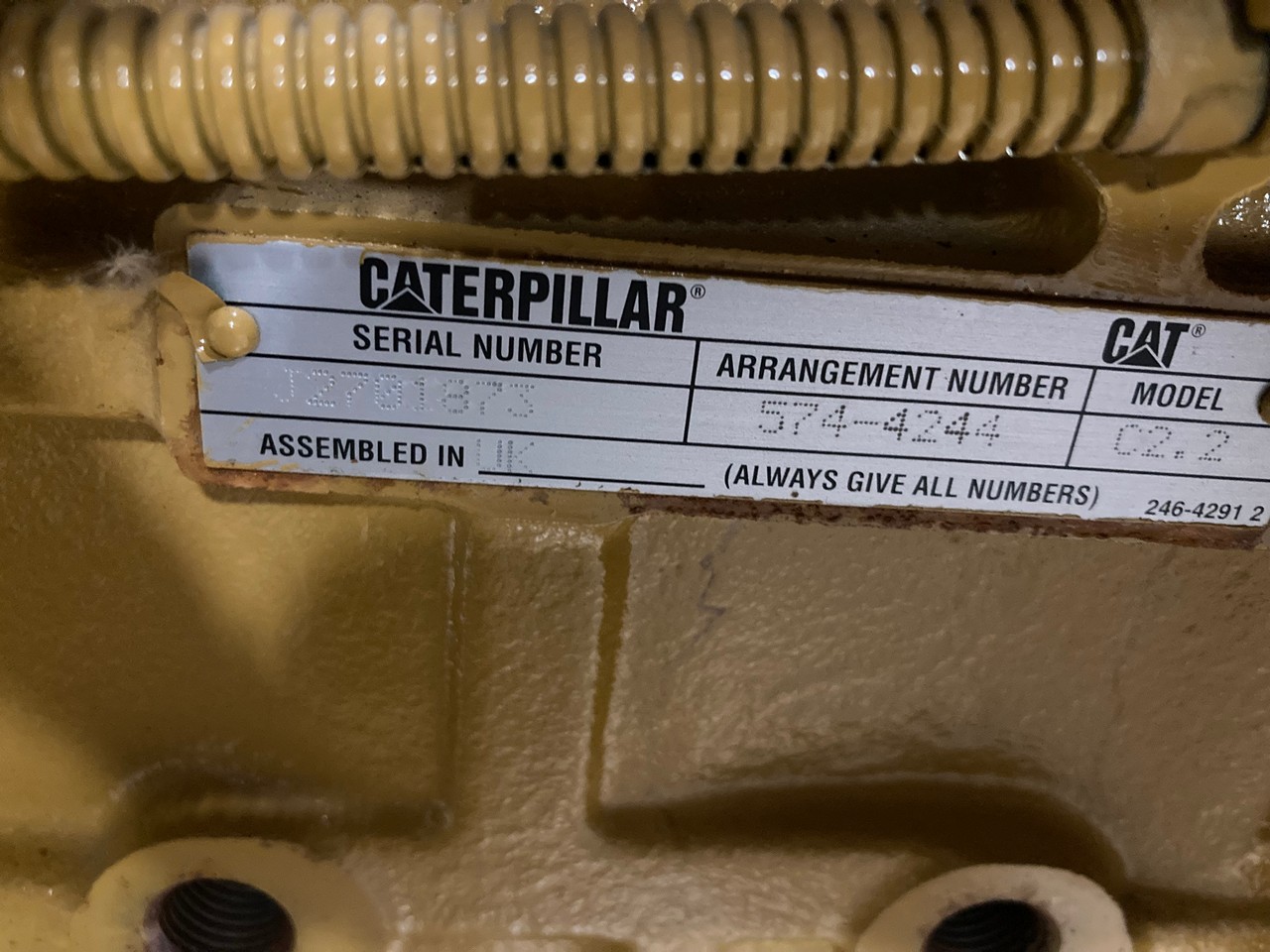 NEW 2022 CATERPILLAR C2.2 74HP DIESEL ENGINE FOR SALE at ADELMAN’S in CANTON, OHIO. All COMPLETE, with ECM, STARTER, ALTERNATOR, TURBOCHARGER, FLYWHEEL, and CLEAN EMISSIONS CATALYST,  2.2 LITERS,  74 HP @ 2800 RPM,  574-4244 ARRANGEMENT #,  COMMON RAIL FUEL SYSTEM,  TIER 4 FINAL EMISSIONS RATING,  MPKXL02.2IR1 FAMILY #, with DDI, TAA, ECM, DOC, EGR, & PTOX EMISSIONS CONTROL SYSTEMS.  MODEL CODE # 5076/2800. STOCK # C22-01873