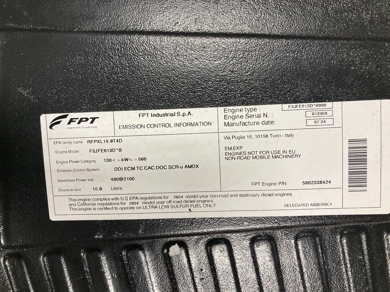NEW 2024 FPT INDUSTRIAL F3JFE613D CURSOR 16 DIESEL ENGINE FOR SALE at ADELMAN’S TRUCK PARTS in CANTON, OHIO. COMPLETE, with TURBOCHARGER, STARTER, ALTERNATOR, ECM, FLYWHEEL, & HOUSING, MODEL F3JFE613D*B008, 644 HP @ 2100 RPM, 15.9 LITERS, TIER 4 FINAL, RFPXL15.9T4D FAMILY #, with DDI, ECM, TC, CAC, DOC, SCR-U, & AMOX EMISSIONS CONTROL SYSTEMS. NO ENGINE BRAKE. COMES WITH EMISSIONS AFTER TREATMENT. FPT # 5802338424.