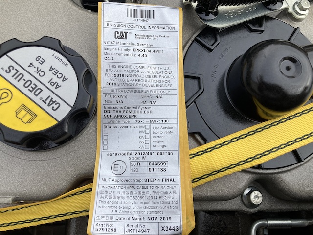 NEW 2019 CATERPILLAR C4.4 ACERT ELECTRONIC DIESEL ENGINE FOR SALE IN CANTON, OHIO. All COMPLETE WITH STARTER, ALTERNATOR, TURBOCHARGER, ECM, FLYWHEEL, AND CLEAN EMISSIONS MODULE. 142 HP @ 2200 RPM, 579-1298 ARRANGEMENT #, COMMON RAIL FUEL SYSTEM. TIER 4 FINAL, KPKXL04.4MT1 FAMILY #, DDI, TAA, ECM, DOC, EGR, SCR, AMOX, & EPR EMISSIONS CONTROL SYSTEMS. NO CORE EXCHANGE NEEDED!