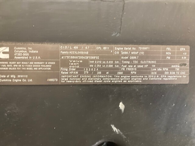 NEW CUMMINS QSB6.7 INDUSTRIAL DIESEL ENGINE FOR SALE AT ADELMAN’S IN OHIO. ACEXL0409AAB FAMILY #, DDI, ECM, TC, & CAC EMISSIONS CONTROL SYSTEMS, 8611 CPL #, 2010 YEAR, 275 HP @ 2500 RPM’S, CM850 FUEL SYSTEM.