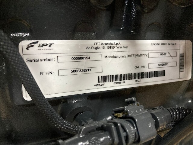 NEW 2022 Yr. FPT INDUSTRIAL F5HFL413J*A004 DIESEL ENGINE FOR SALE. COMPLETE MINUS ECM, STARTER AND ALTERNATOR. COMMON RAIL FUEL SYSTEM, 3.4 LITERS, TIER 4B EMISSIONS. NO CORE NEEDED!