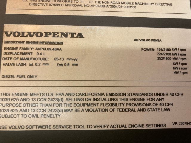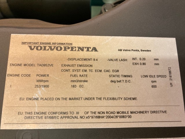 NEW VOLVO-PENTA TAD952VE ELECTRONIC POWER UNIT FOR SALE. SKID MOUNTED AND COMPLETE, WITH RADIATOR AND CHARGE AIR COOLER, CONTROL PANEL, STATER, ALT., & AIR CLEANER. 338 HP. EMISSIONS CONTROL SYSTEMS: EM, TC, ECM, CAC, & EGR.