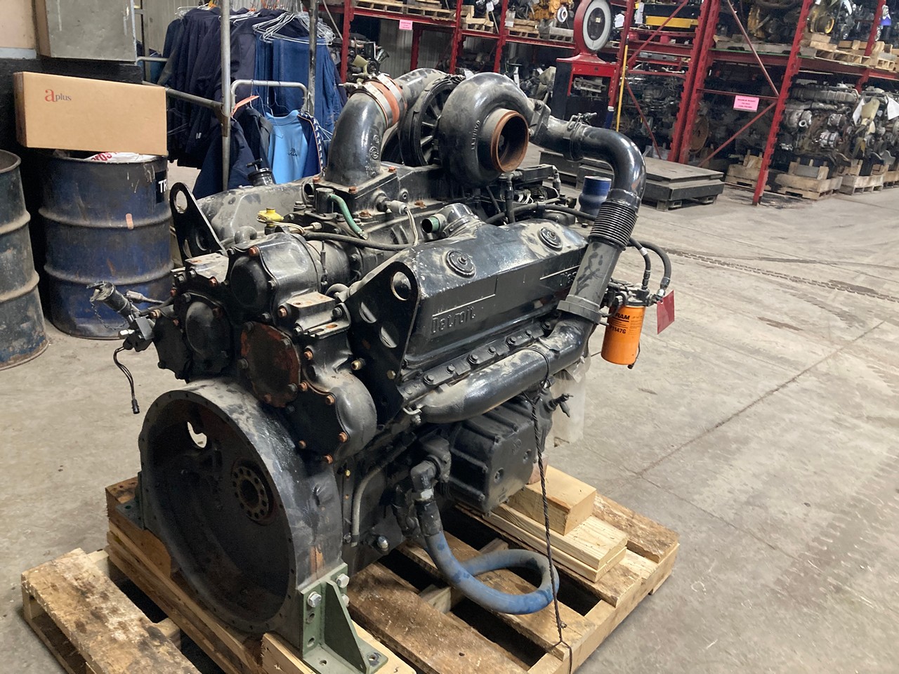 GOVERNMENT REBUILT DETROIT 8V92TA DDEC III, ELECTRONIC DIESEL ENGINE FOR SALE at ADELMAN’S TRUCK PARTS in CANTON, OHIO. COMPLETE, MINUS STARTER and FLYWHEEL, RIGHT HAND ROTATION, 8087-7K91 MODEL #, DDEC 3, TURBOCHARGED and WATER AFTERCOOLED, 500HP, with ONLY 3.5 HOURS on ENGINE. REBUILT IN 2020