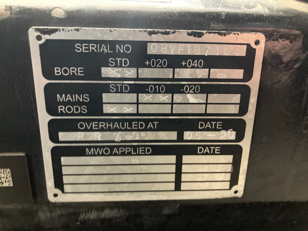 | Engine Serial NO. | 08VF187165 |